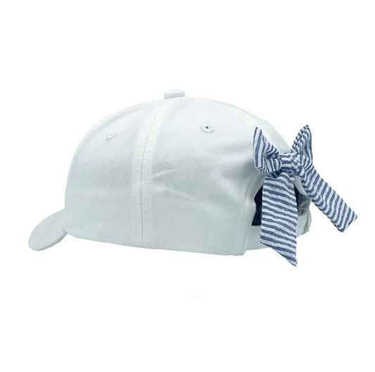 Pink Seersucker Bunny Bow Back Hat