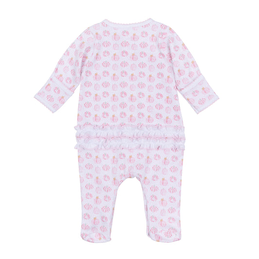 Precious Pumpkins Ruffle Printed Zipper Footie - Pink